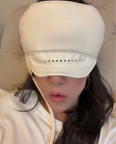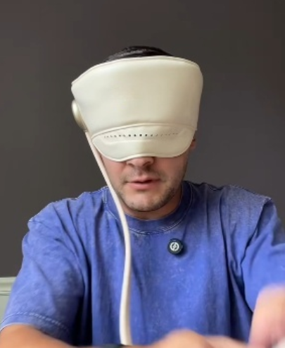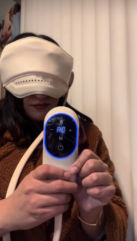 It uses six soft airbags to gently press and knead your forehead and temples. It also has heat settings that help relax your head and scalp.